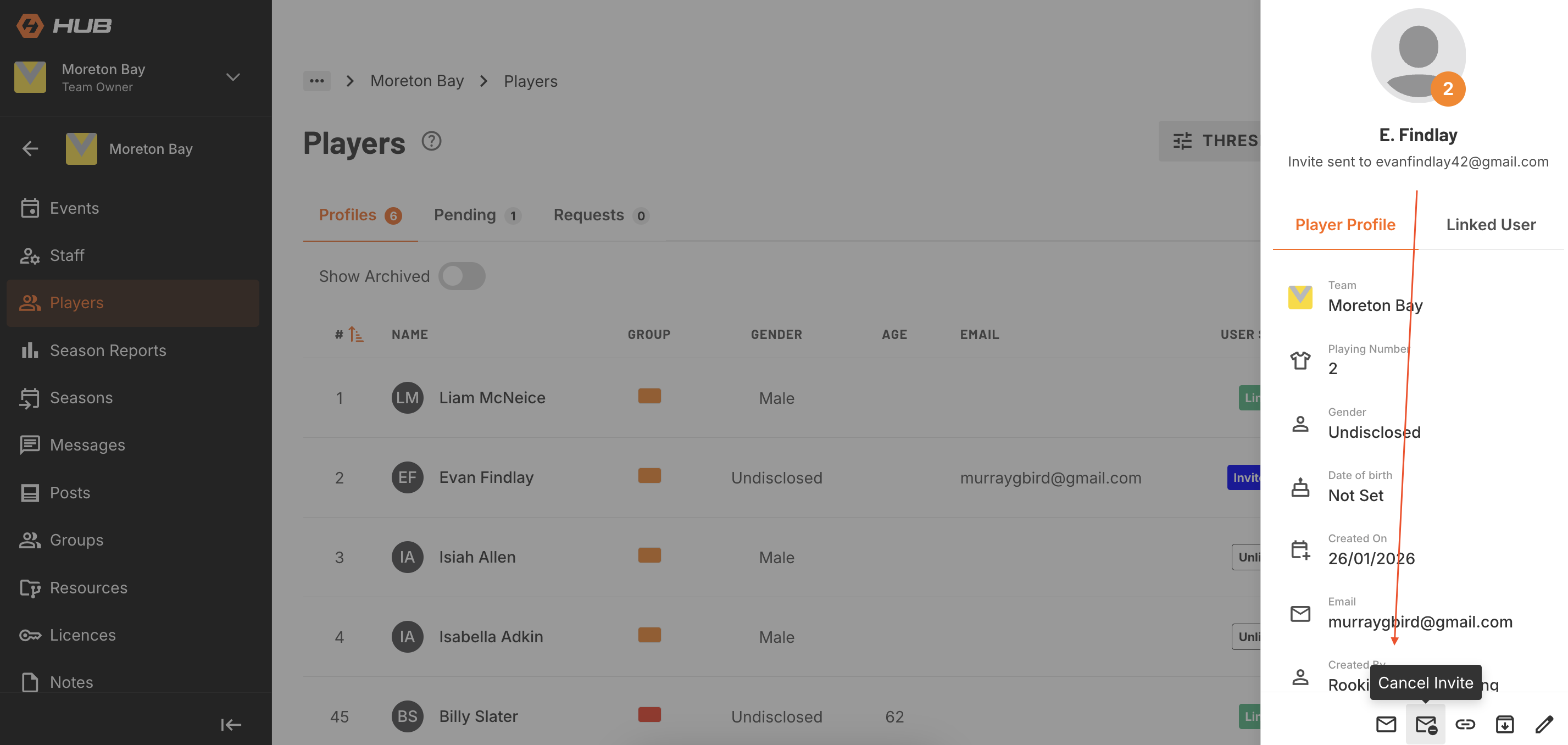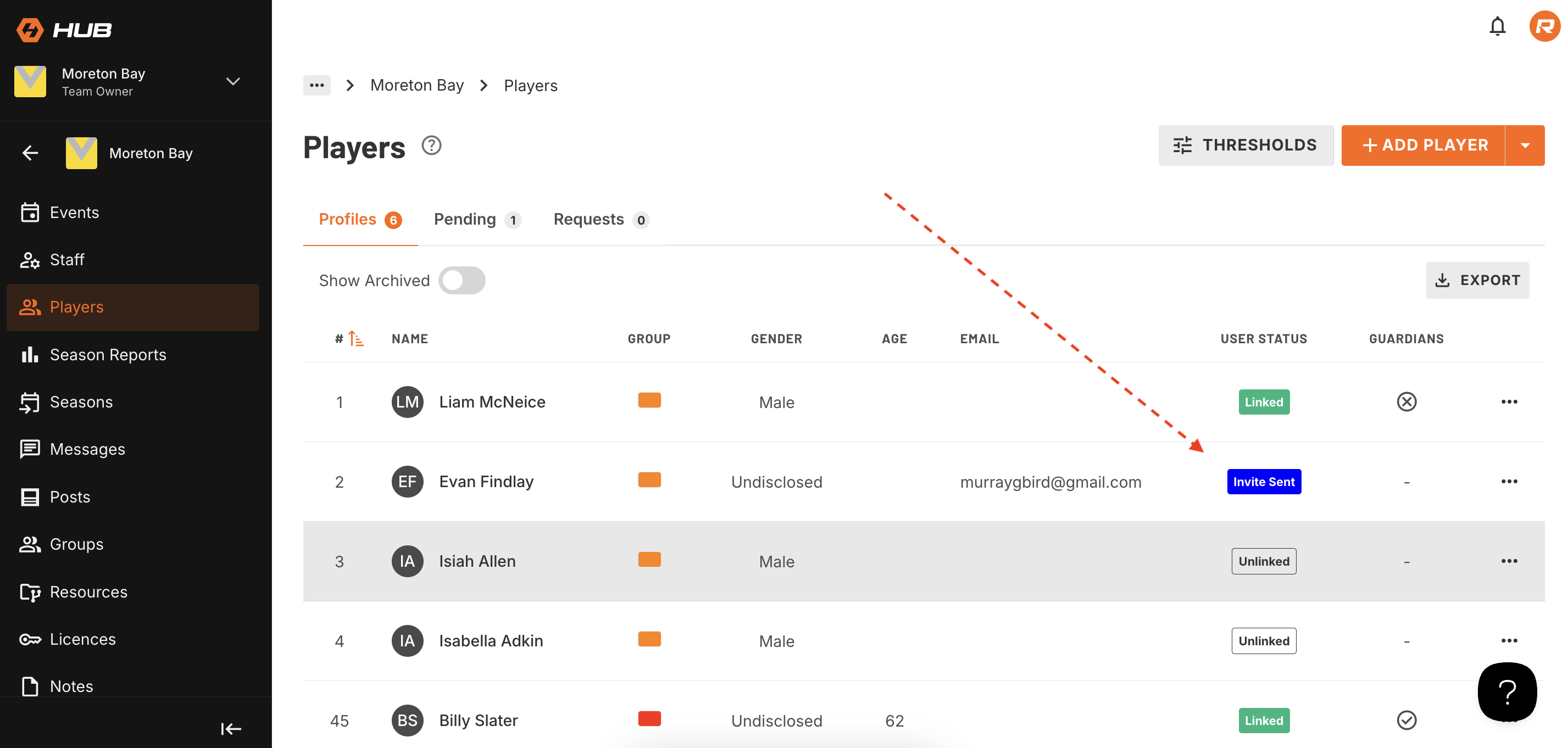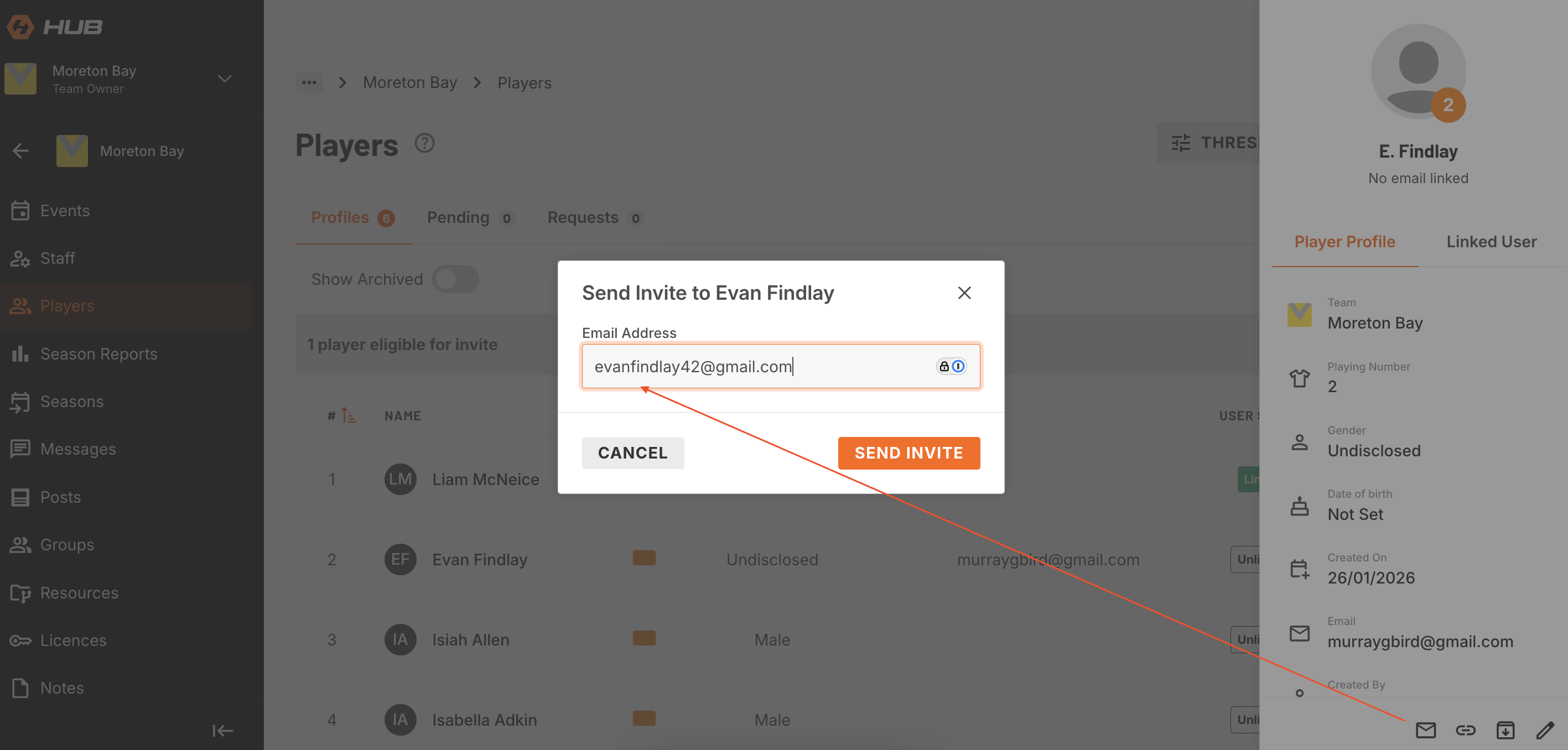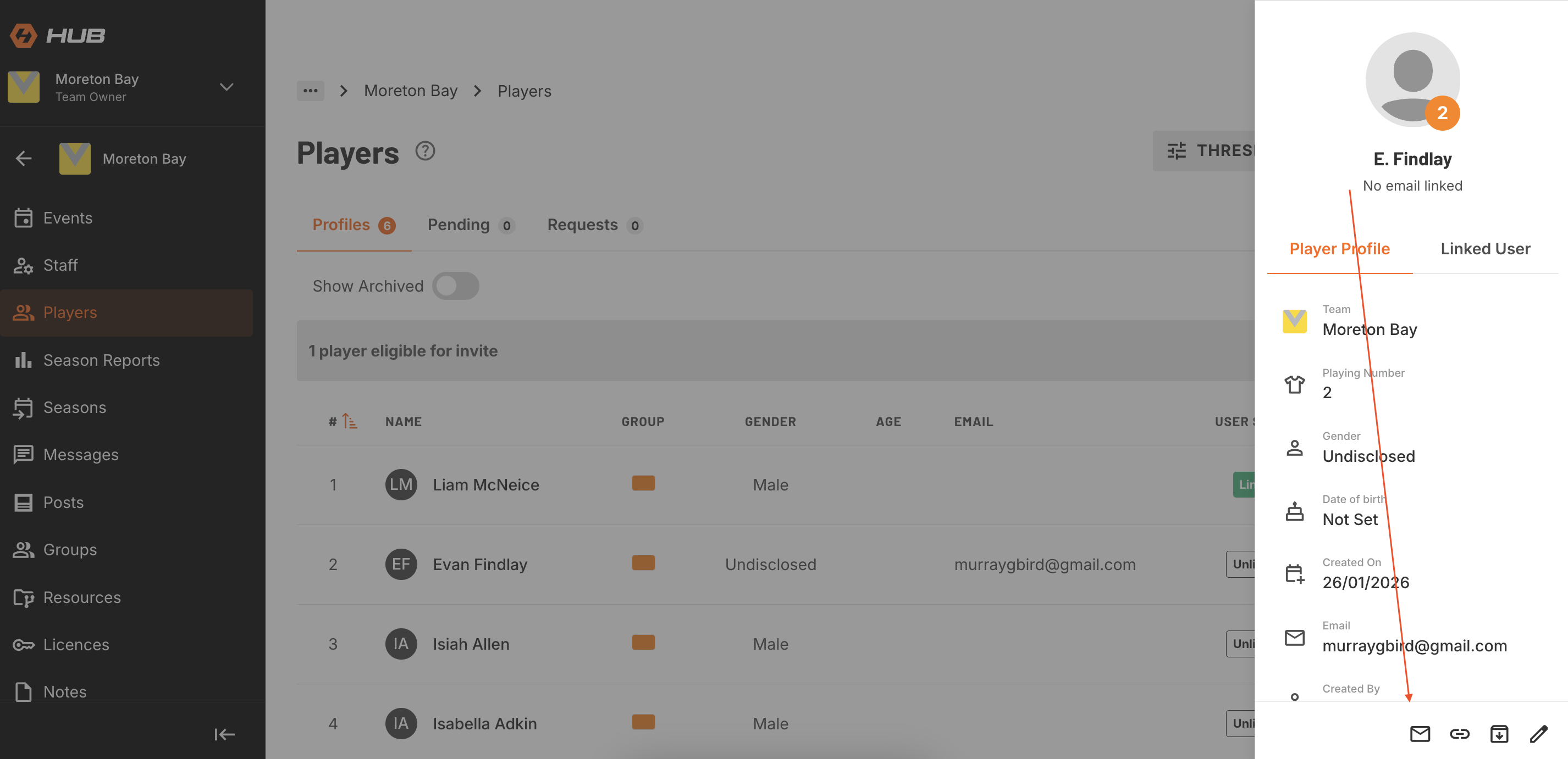 To enable player access to Rookie Me Connect you will need to link them to their profile via an email address.
