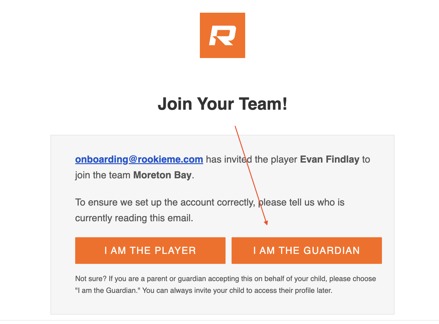 Please see below for an example of the email players (and, potentially guardians) will receive.