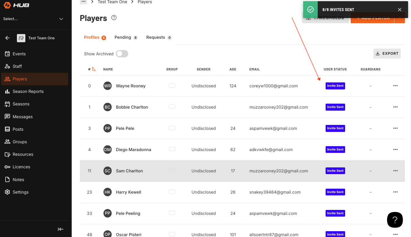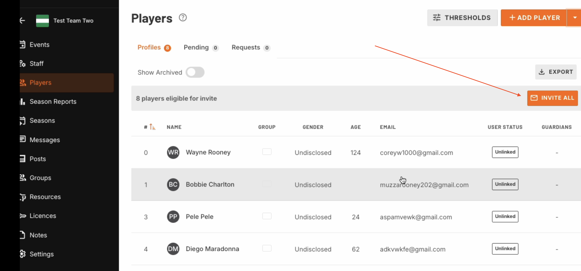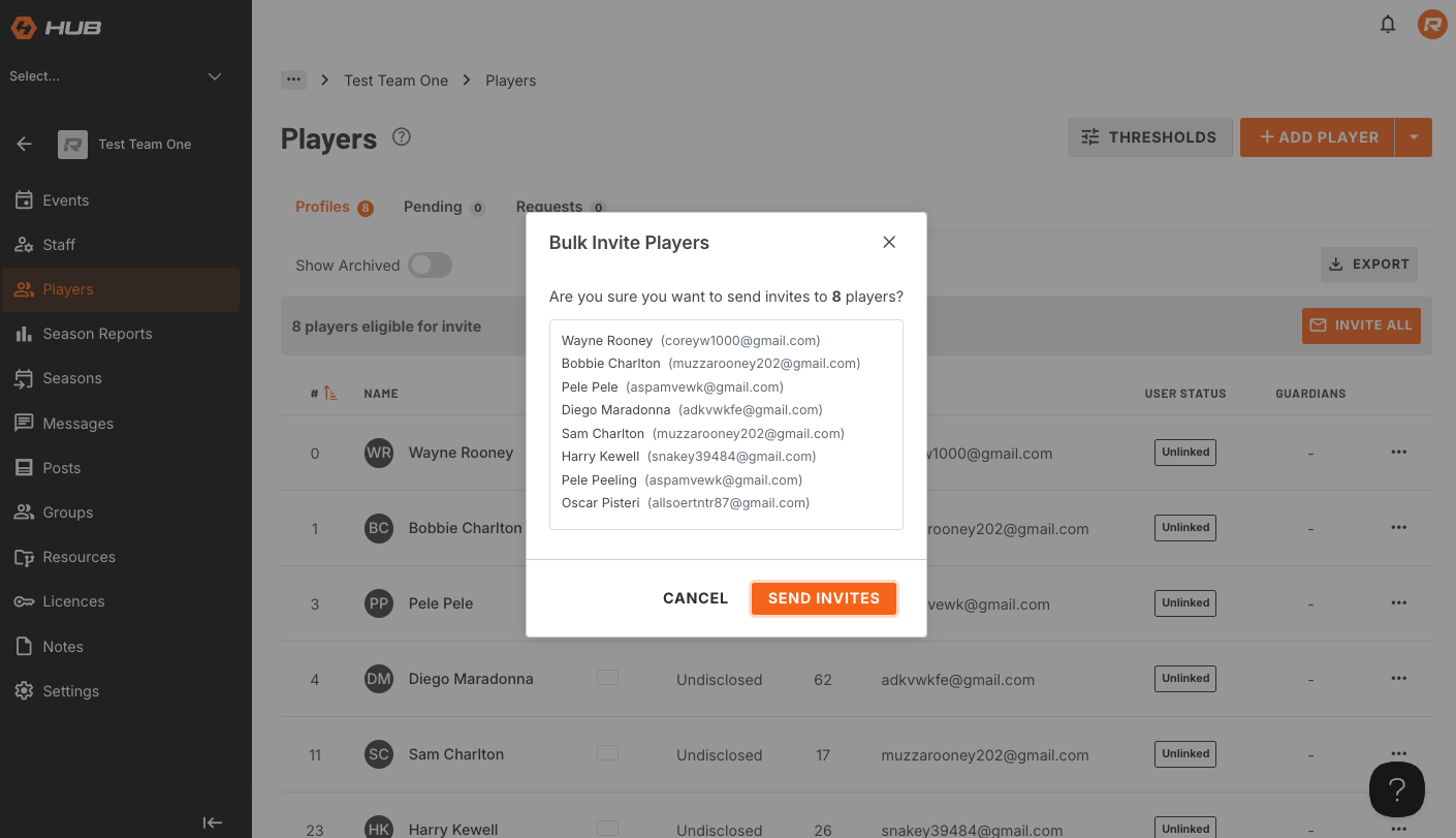 As a Team Admin, if you have used the Bulk Import feature you will also be able to conduct a Bulk Invite.