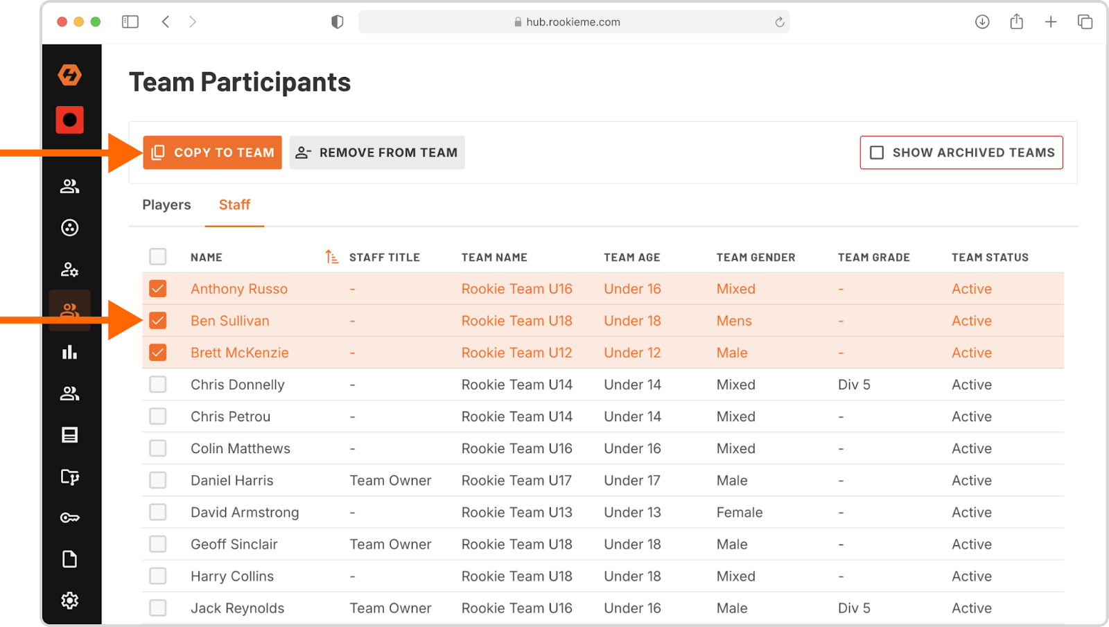 Organisation Admins can easily move coaches and team managers between teams without needing to send new invites.